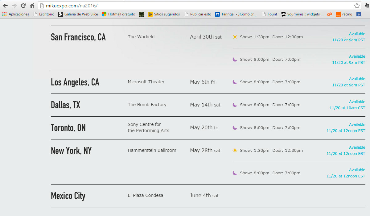 Aquí la captura de pantalla de la web y la dirección para que tu mismo la veas: http://mikuexpo.com/na2016/