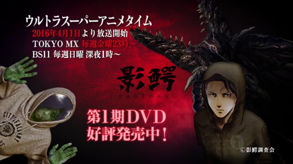 La segunda parte del anime de terror Kagewani ha recibido luz verde y se ha anunciado que se estrenará el 1ro de abril de este año, dentro del espacio Ultra Super Anime Time, teniendo como título: «Kawewani: Sho«.