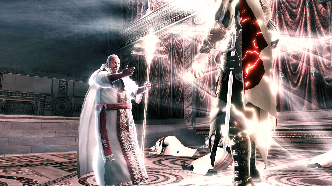 En un nuevo número de Jueves de Escena Épica Games les traigo el final del juego Assassin’s Creed II donde el protagonista es Desmond Miles y su antepasado Ezio Auditore. En esta parte nos enfrentamos al jefe final del juego, pero no es un jefe cualquiera, es un imponente papa, sí, un papa, igual que los que viven en el Vaticano hoy en día, se trata de Rodrigo Borgia, y como papa se llamaba “Alejandro VI“.