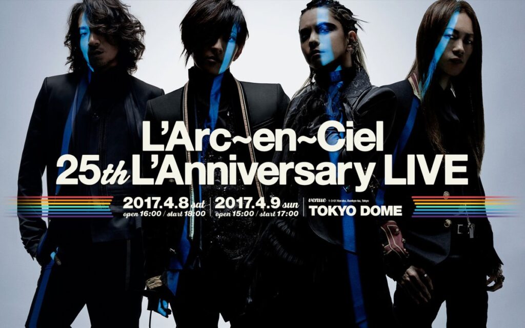 El día de hoy te recordamos que el próximo 9 de Abril de 2017, se exhibirá en Cinepolis de México el concierto del 25 Aniversario de la banda japonesa L’Arc-en-Ciel, conocidos internacionalmente por sus diversas interpretaciones de calidad. El concierto lleva por título “25th L’Anniversary LIVE»