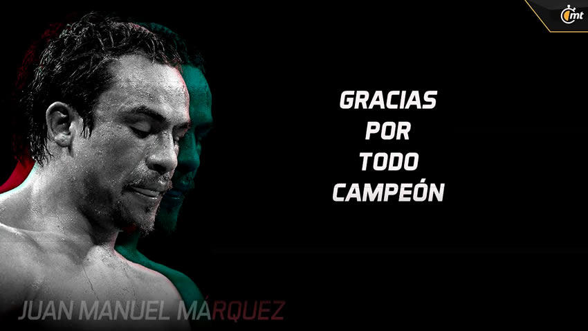 Así que hoy viernes, el «Dinamita» Juan Manuel Marquez, con 44 años de edad y 21 de trayectoria, se retira del boxeo profesional, con una marca de 56 victorias, 7 derrotas y un empate.