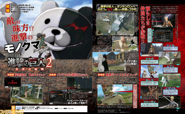 La revista Famitsu ha confirmado la presencia de Monokuma (Danganronpa) en Attack on Titan 2: Future Coordinates.