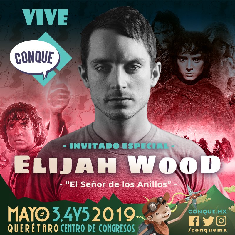 Después de su triunfal regreso al mundo de las convenciones de comics y cultura geek en México en el 2017, trayendo a Stan Lee, la CONQUE en su versión 2019, acaba de anunciar que Elijah Wood, mejor conocido en su papel como Frodo en la espectacular trilogía del Señor de Los Anillos, estará presente en esta edición.