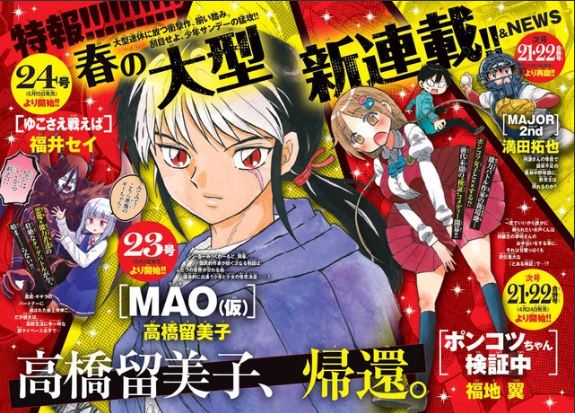 Su obra más reciente fue RIN-NE, la cual terminó apenas en diciembre de 2017, y ahora nos ofrecerá MAO, una historia en donde se cruzan dos mundos, y se centrará en un peculiar romance entre un chico y una chica que se encuentran de manera sorpresiva.