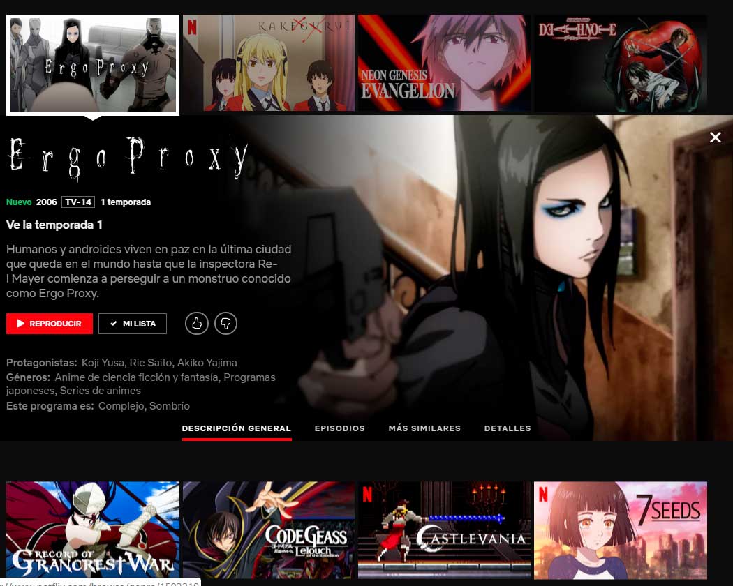 Link Ergo Proxy Netflix: https://www.netflix.com/title/80117347