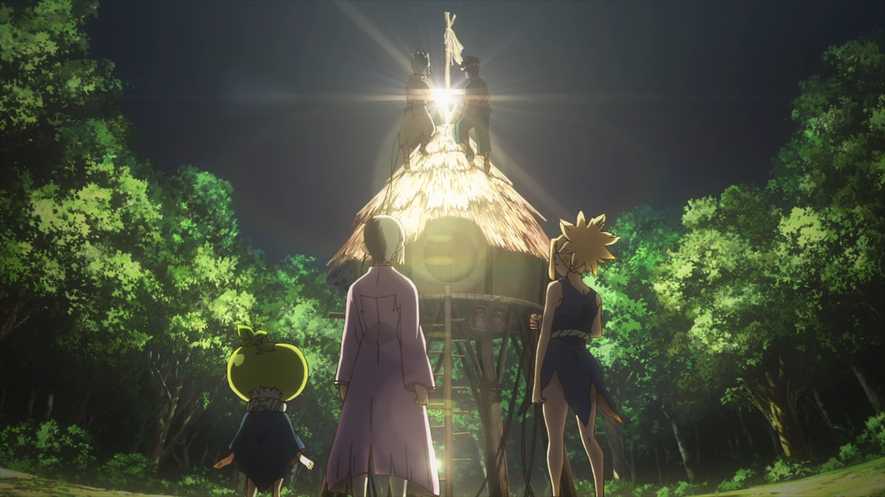 De tal manera, que un truco de magia sencillo lo hizo retirar de la escena que había provocado en intensiones de atacar. Las palabras de Gen pueden ser ligeras, pero de ser convincente, si puede ser. En cualquier caso, no podría ser la última vez que veremos al grupo de Magma, supondría ser un dolor de cabeza constante para Senku. Con la lanza de Kinro a través de las medidas tomadas por Kohaku, logran crear el pararrayos perfecto para el escenario y con ello lograr obtener energía eléctrica para traer luz a la villa, dando pequeños pasos con grandes logros.