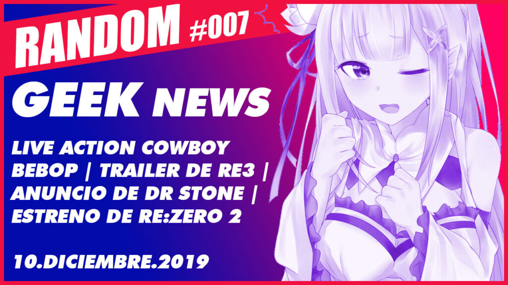 Ya es martes y como tal, les traemos el Random 007, en esta ocasión tenemos noticias bastante interesantes, Netflix confirma la segunda parte de Knights of the Zodiac: Saint Seiya, el estreno de la temporada 4 de Rick y Morty, novedades del live action de Cowboy Bebop, al fin hay trailer de Resident Evil 3 Remake y el DLC de Kingdom Hearts, anuncio supe importante de Dr. Stone entre otras noticias más!