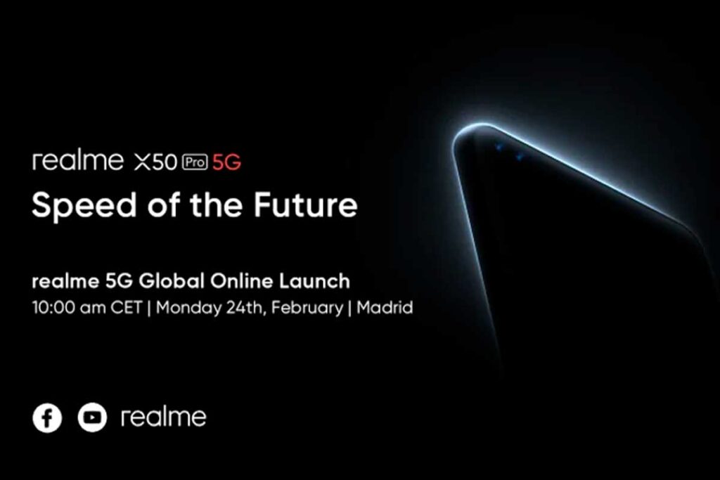 Madrid España, a 17 de febrero de 2020.-  realme, la marca de teléfonos inteligentes de más rápido crecimiento, anunció oficialmente hoy, que llevará a cabo un evento de lanzamiento global en línea de un nuevos productos 5G con el tema «Velocidad del futuro» desde Madrid, España, a las 10:00 am (UTC + 01: 00) del próximo 24 de febrero. El primer teléfono inteligente insignia 5G de realme, el realme X50 Pro 5G, debutará en éste. La transmisión en vivo del evento se difundirá a nivel mundial a más de 15 países por medio de YouTube, Facebook y realme.com, incluyendo México y Colombia, mercados de Latinoamérica donde la marca llegará este 2020.