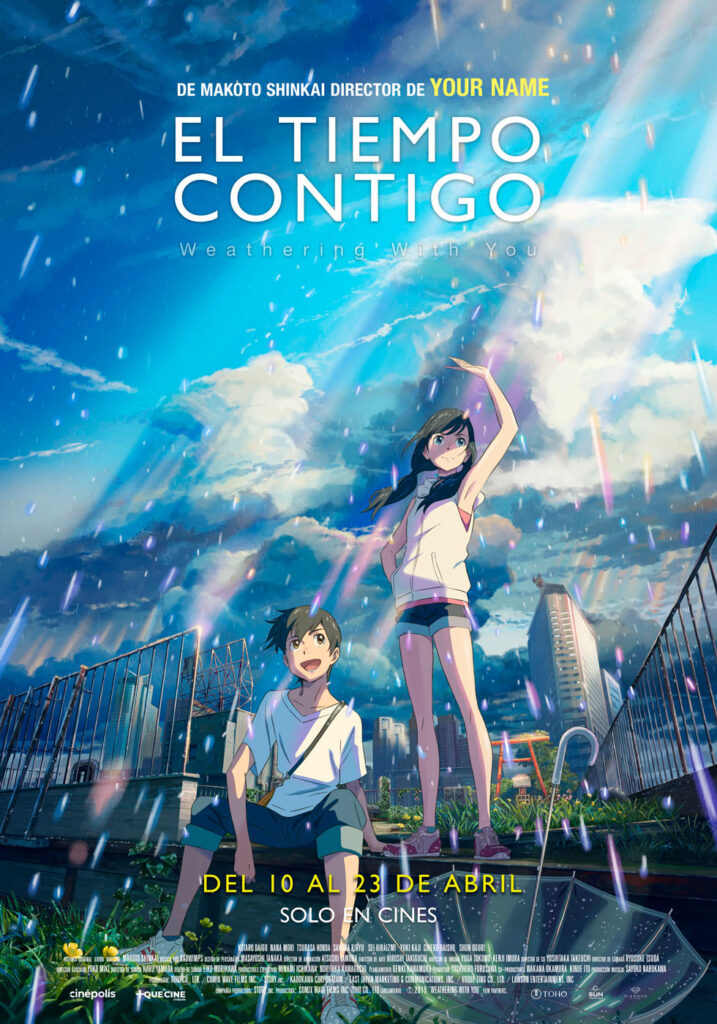 Hace unos instantes les compartimos la nota de que Tenki No Ko se estrenaría en Cinepolis el 9 de abril, sin haber confirmación oficial por parte de la empresa, pero al final ya tenemos confirmación y poster en español.