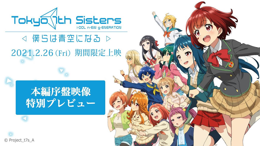 El día de hoy se han liberado en el sitio web oficial para la película animada Tokyo 7th Sisters: Bokura wa Aozora ni Naru, adaptación del juego para smartphones «Tokyo 7th Sisters», un video con 9 minutos de metraje de las primeras partes de esta película, además de presentar la unidad «777 SISTERS».