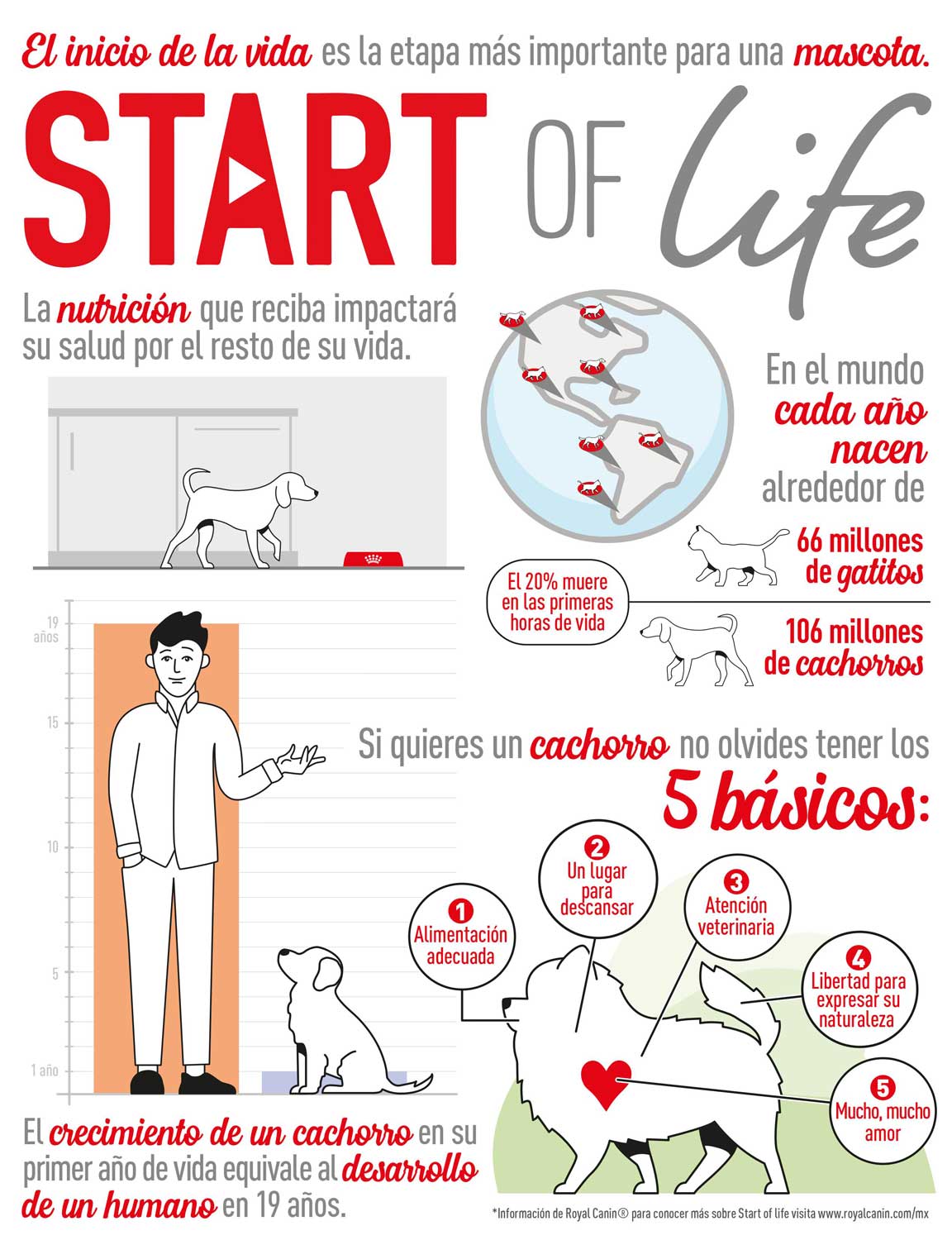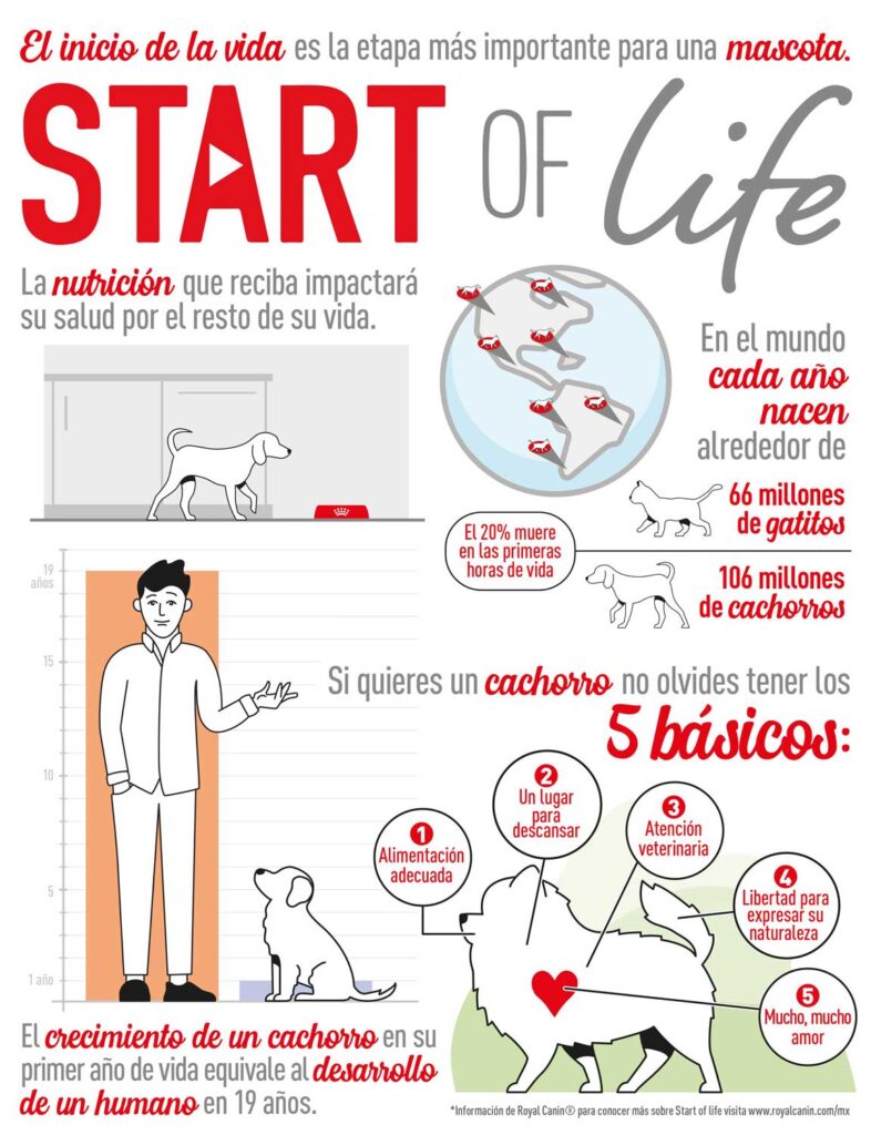 Conscientes de esta situación y de lo fundamental que es la alimentación durante la primera etapa de vida de un cachorro, Royal Canin® lanza su programa Start of Life con el objetivo de liberar el potencial de los propietarios de mascotas en ámbitos como el nacimiento y crecimiento de su mascota, así como en momentos clave como la infancia y la adolescencia, a través de herramientas digitales para los médicos veterinarios, entrenamiento y seguimiento en la crianza de cachorros, información y cercanía con los responsables de mascota y de un kit que contiene lo esencial para el inicio de vida en el hogar de una familia.