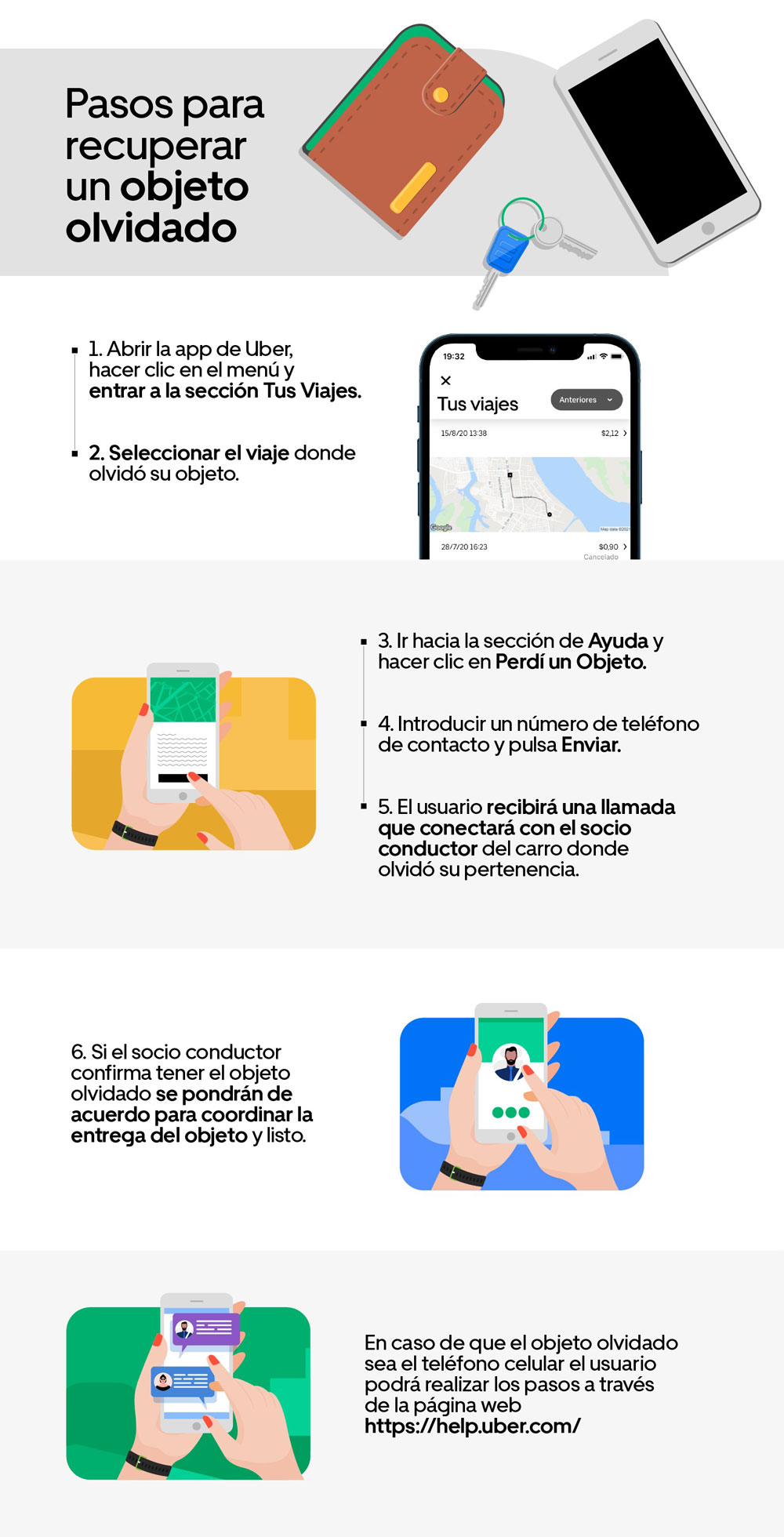 Comprendemos la importancia que tiene para los usuarios poder recuperar un objeto olvidado, así como el estrés que puede generar no saber cómo hacerlo. Afortunadamente, recuperar artículos olvidados al usar Uber es un proceso sencillo.