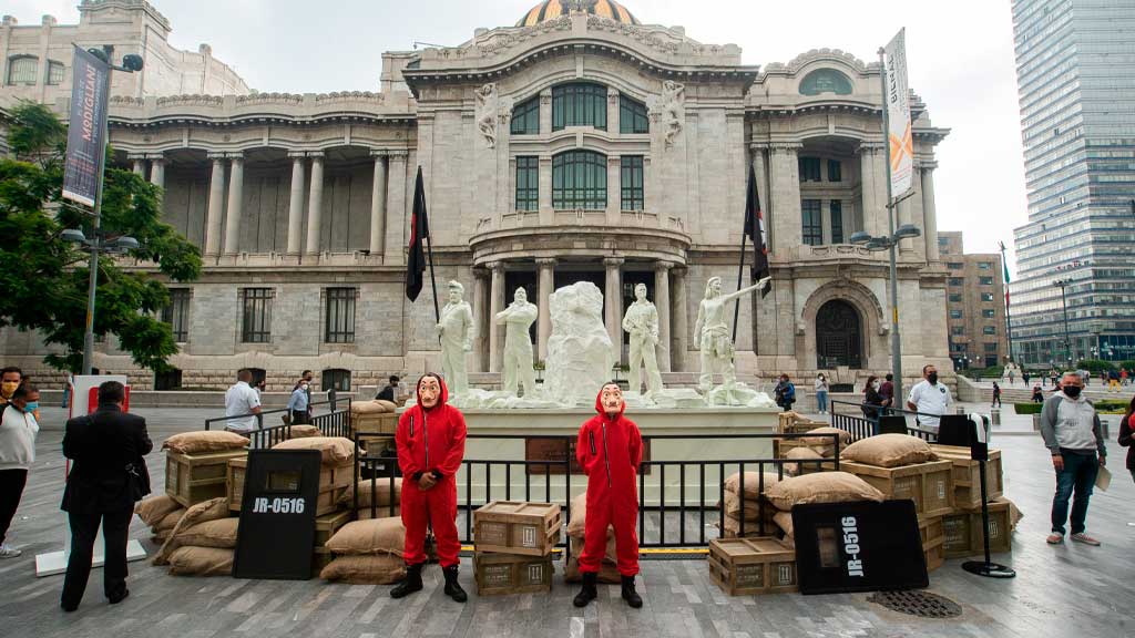 La noche del 31 de agosto, frente al Palacio de Bellas Artes en el Centro Histórico de la Ciudad de México, se instalaron cinco esculturas para honrar a los personajes de La Casa de Papel que nos han dejado, y desde el 1 de septiembre la audiencia ha podido visitar (y recordar) a los integrantes que dieron todo en la Fábrica Nacional de la Moneda y Timbre y el Banco de España.