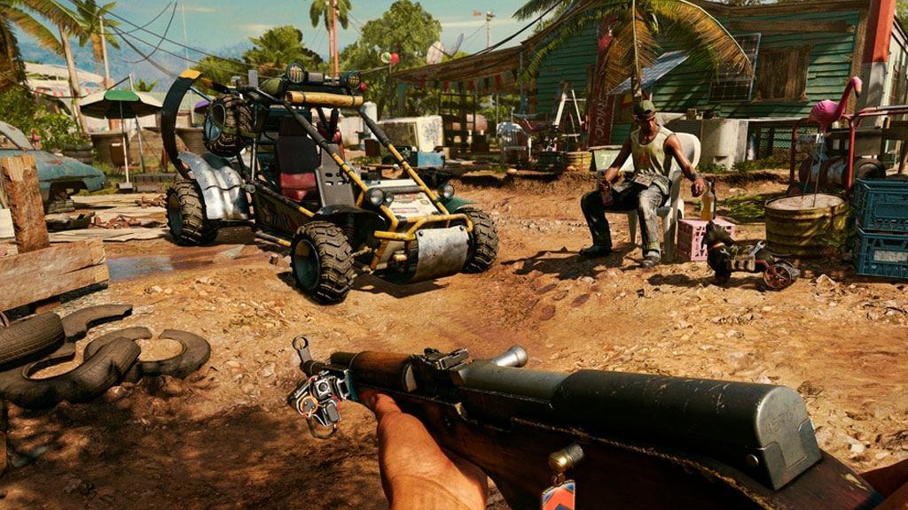 «En Far Cry 6, ‘resolver’ se trata de convertir al jugador en un ejército de una sola guerrilla», dice Grivel, «e infligir la máxima cantidad de caos con lo que tienen».