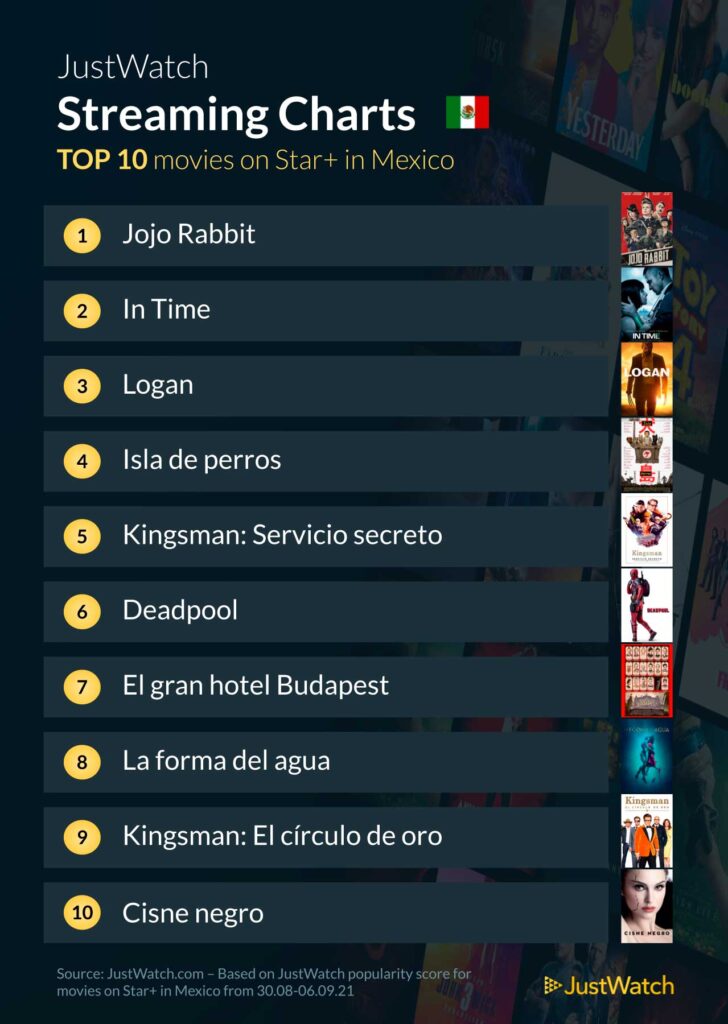 Como saben «Star +« lleva una semana disponible en México y los chicos de «JustWatch« los invitan a conocer las 10 mejores películas y series de esta plataforma de streaming.
