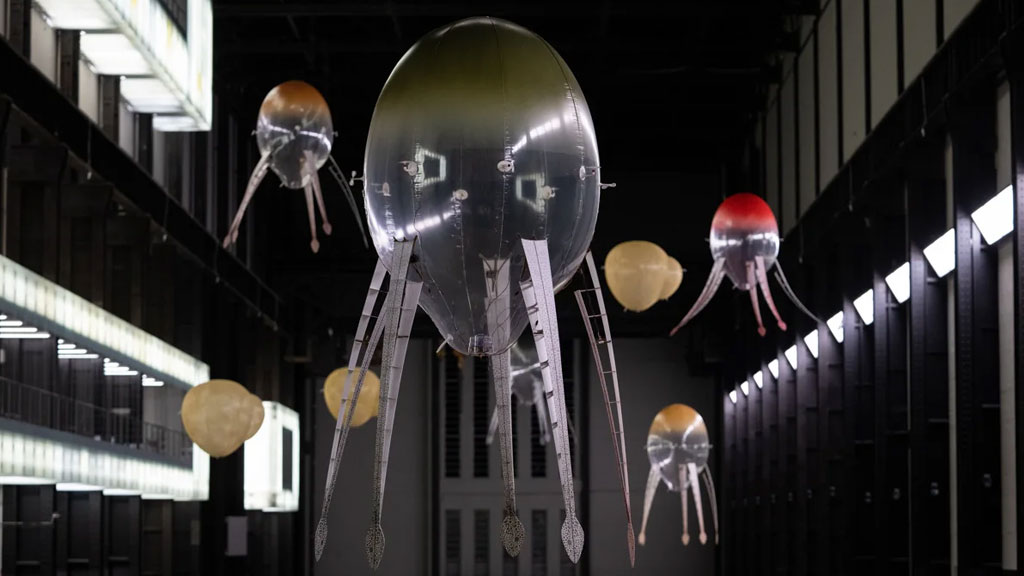 A manera de guiño al Turbine Hall de la antigua Bankside Power Station, antes de que el sitio se convirtiera en la Tate Modern, Anicka Yi llena la sala con máquinas una vez más, transformando el espacio con su visión de un nuevo tipo de ecosistema. Moviéndose por el aire, sus máquinas flotantes, llamadas aerobios, incitan a los visitantes a pensar en nuevas formas en que las máquinas podrían habitar el mundo. Es la sexta Comisión Hyundai de una serie anual de trabajos específicos de artistas internacionales creados para el Turbine Hall, como parte de una asociación a largo plazo entre la Tate Modern y Hyundai Motor.