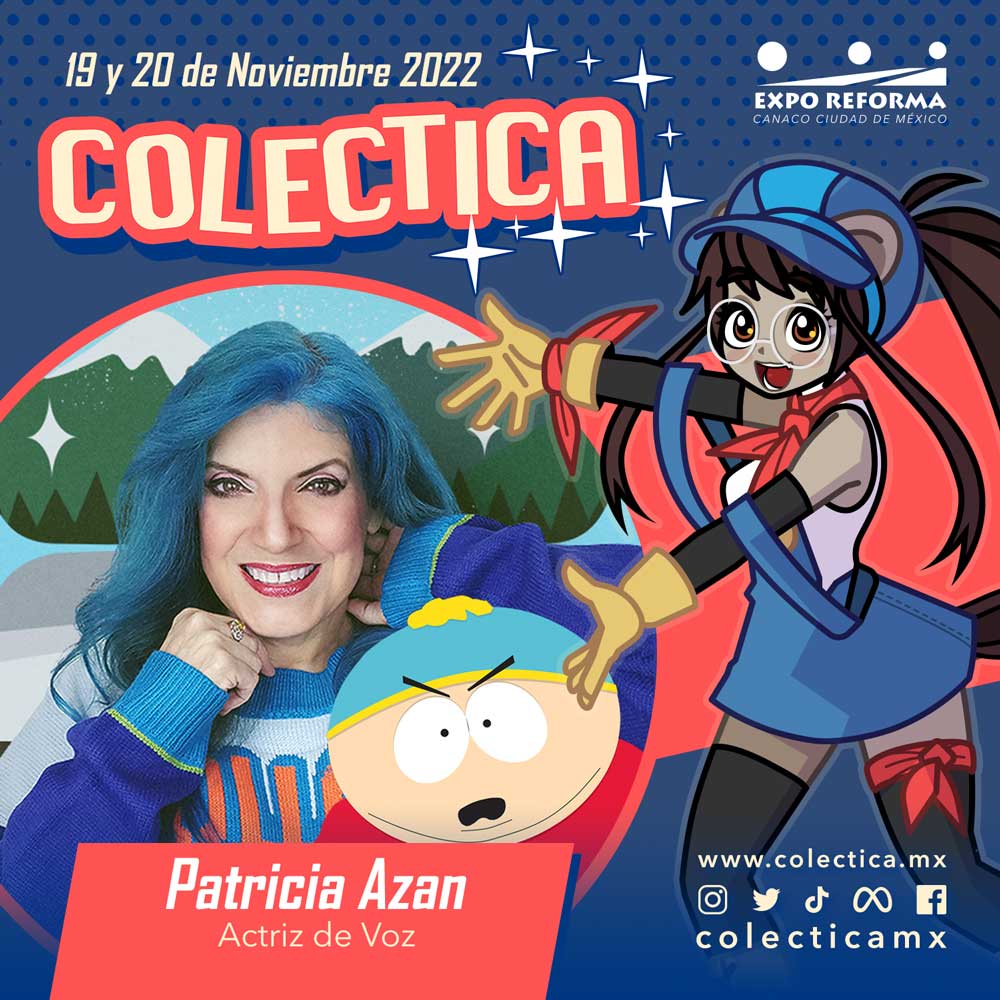 Colectica confirma que Patricia Azan visitara la Ciudad de México como la primer invitada  internacional de su edición 2022, actriz de voz de personajes como Cartman (South Park), Vicky  (Los padrinos mágicos) y muchos otros: https://doblaje.fandom.com/es/wiki/Patricia_Azan