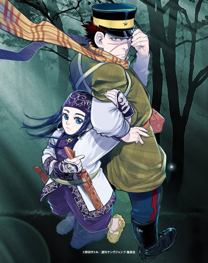 Sugimoto no piensa mucho en la historia hasta que descubre el cadáver del borracho con los mismos tatuajes descritos en la historia. Pero antes de que pueda ordenar sus pensamientos, un oso grizzly, la causa de la muerte del hombre, se acerca a Sugimoto, decidido a terminar su comida. Es salvado por una joven Ainu llamada Asirpa, cuyo padre resultó ser uno de los Ainu asesinados. Con las habilidades de caza de Asirpa y los instintos de supervivencia de Sugimoto, la pareja acuerda unir fuerzas y encontrar el tesoro escondido: uno para recuperar lo que era legítimamente de su pueblo y el otro para cumplir el último deseo de su amigo.