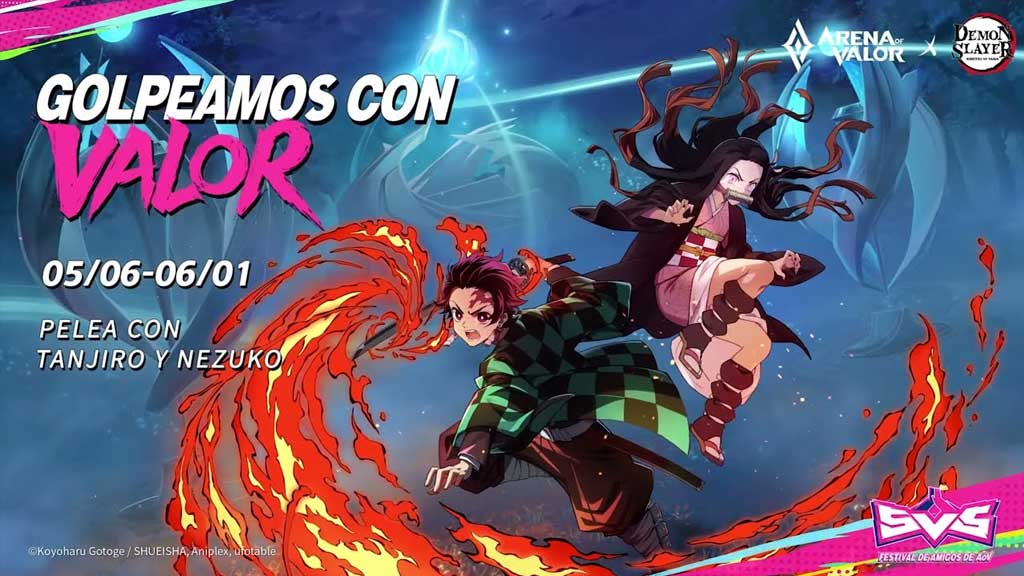 Como parte de las celebraciones por el Festival 5v5, Arena of Valor (AoV), la exitosa experiencia de Multijugador de Arena de Batalla en Línea 5v5 (MOBA, por sus siglas en inglés) desarrollada por TiMi Studio Group y publicada por Level Infinite, se asocia con Demon Slayer: Kimetsu no Yaiba en un evento colaborativo que incluye nuevos aspectos, una actividad dentro del juego, y muchas más sorpresas y recompensas dentro del juego.