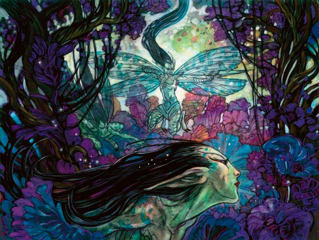 3.- Bitterblossom, por Rebecca Guay. La paleta de colores de matices fríos con efecto de acuarela y las líneas sumamente pronunciadas le dan un aspecto hipnotizante, aterrorizante y encantador al mismo tiempo.