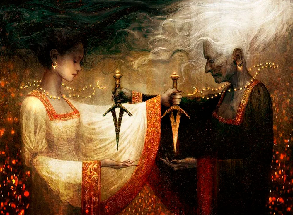 4.- Cuombajj Witches, por Seb Mckinnon. Visualmenterefleja la dualidad entre la vida y la muerte o la juventud y la vejez en un maravilloso trabajo de claroscuro.
