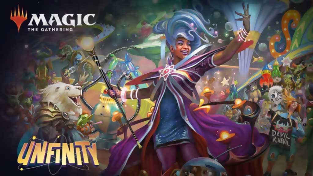 Jueves 6 de Octubre, 2022 — ¡Vengan, vengan! Wizards of the Coast lanzó hoy Unfinity: la más reciente colección del mejor y más antiguo juego de cartas coleccionables del mundo, Magic: The Gathering (MTG). Unfinity es la primer colección “UN-“ con borde negro que transporta a los jugadores a un carnaval de ciencia ficción de proporciones cósmicas con nuevas mecánicas hilarantes y divertidas. La colección contiene 244 cartas y lanzamientos para el tablero de hoy.