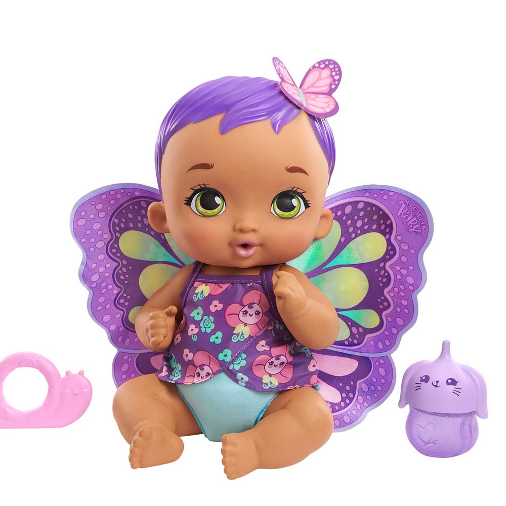 Nacida con alas suaves, cabello fantástico y un dulce aroma a jazmín, esta bebé mariposa quiere mucho amor. Tu peque podrá alimentarla con su biberón y cámbienle el pañal de tela reutilizable que tiene accesorios adicionales para su bebé. Para dormir sus las alas pueden desmontarlas y usarlas como una mantita.