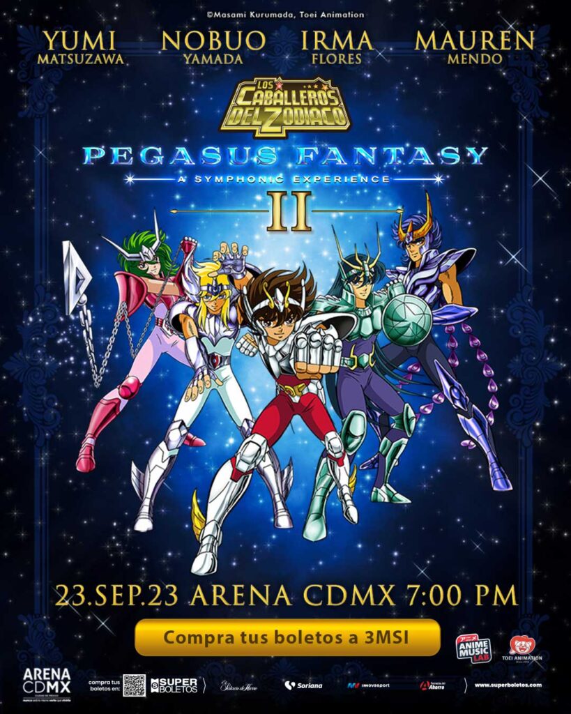 “Pegasus Fantasy : A Symphonic Experience II” es la segunda parte del exitoso concierto de 2022 desarrollado para México en cooperación con los productores de la serie y Toei Animation para crear un evento único con músicos en escena que interpretarán en vivo temas icónicos junto a invitados especiales Irma Flores y Mauren Mendo así como presencia internacional de Yumi Matsuzawa y Nobuo Yamada.