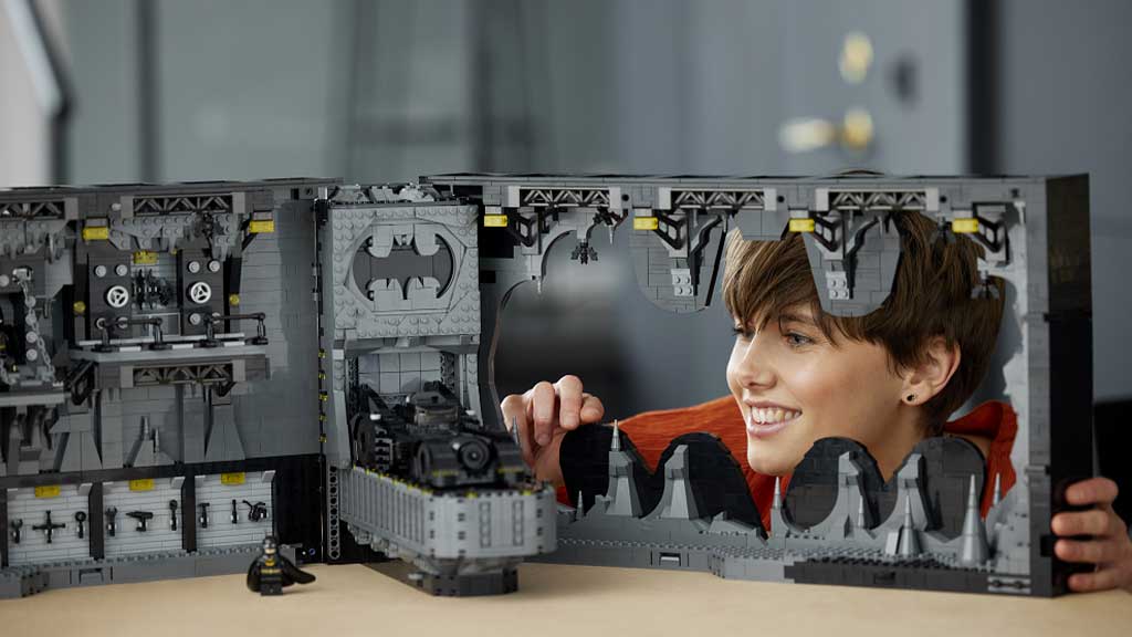 Basado en la película «Batman Returns» de Warner Bros. Pictures, el set está increíblemente detallado y presenta la Baticueva al completo, dentro de una caja expositora con un recorte en forma del emblema de Batman. En el centro del set está el Batimóvil, el set cuenta con ingeniosas funciones y artilugios, como la posibilidad de mover muebles, cambiar imágenes en la gran pantalla, abrir una cámara acorazada y una puerta, y varios ladrillos luminosos.