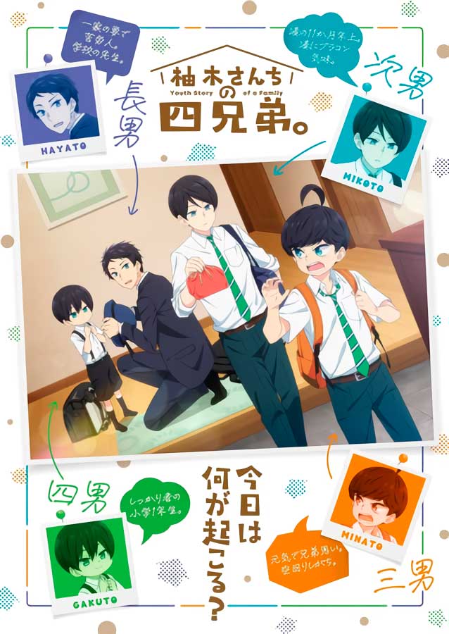 El sitio web oficial de la adaptación televisiva del manga «Yuzuki-san Chi no Yon-Kyōdai» de Shizuki Fujisawa reveló el miércoles cinco miembros más del elenco y su estreno el 5 de octubre.