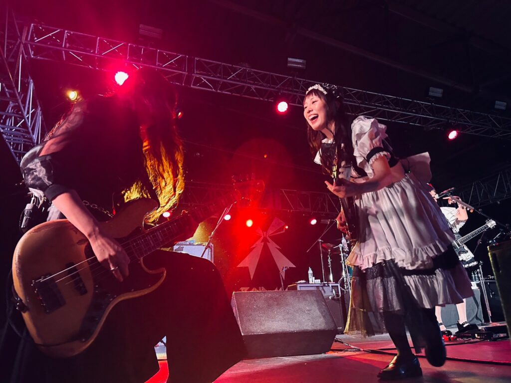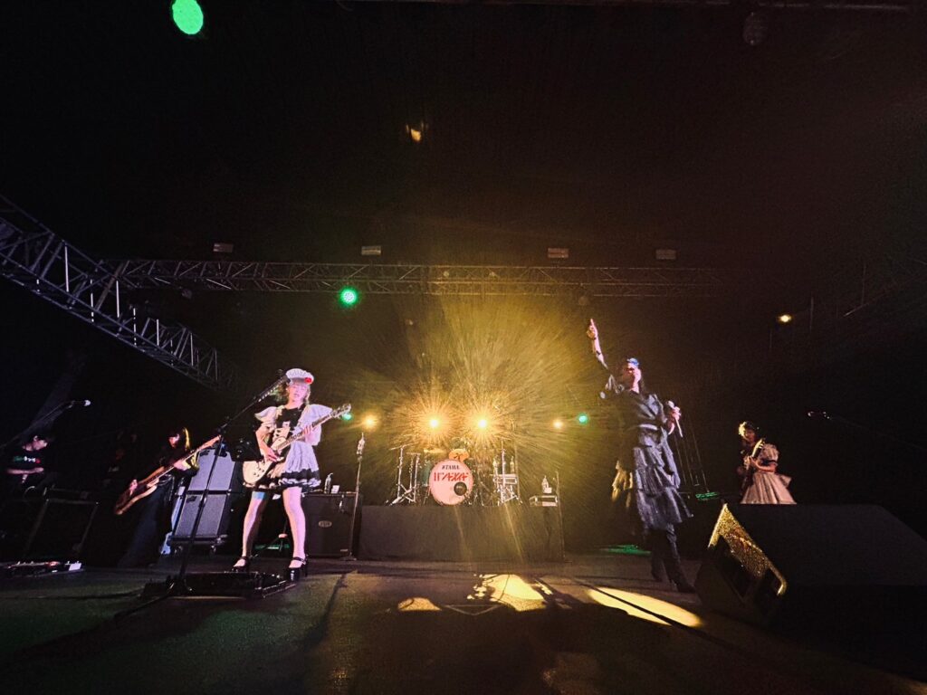 La potencia de BAND-MAID en vivo es algo que no se puede entender del todo hasta presenciarlo. Lo que en estudio ya resulta impresionante, en directo se multiplica por mil. Kanami destrozó la guitarra con solos precisos y vertiginosos que arrancaron ovaciones en más de una ocasión. MISA, por su parte, tejió líneas de bajo con una técnica impecable y groove adictivo. Akane, siempre firme en la batería, ofreció una base sólida que mantuvo todo el show con una energía constante y explosiva. Saiki y Miku se complementaron a la perfección en las voces: una combinación de fuerza, dulzura, crudeza y armonía que definió la experiencia sonora del concierto.