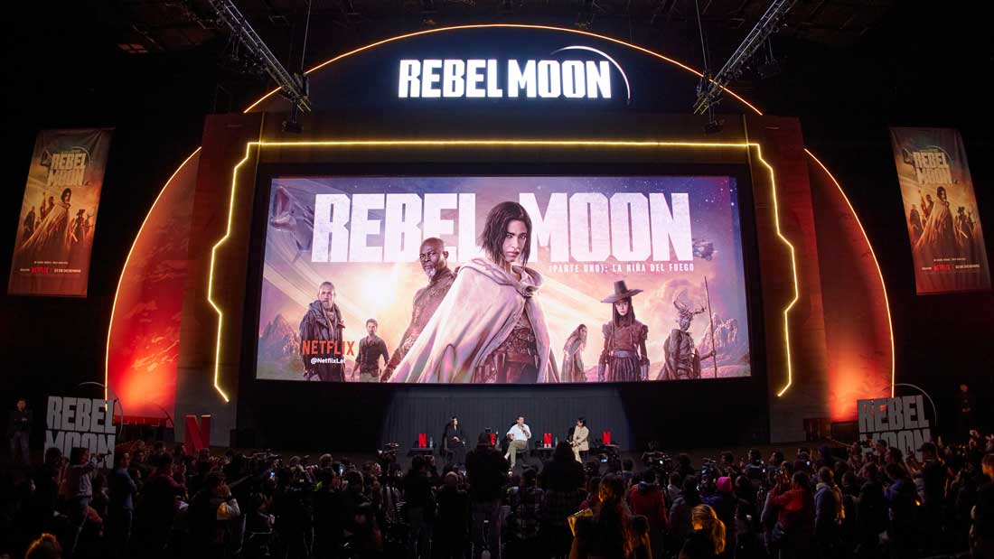 Al caer la tarde, Rebel Moon (Parte 1): La niña del fuego se proyectó en el Frontón México, con la presencia del director Zack Snyder, la actriz Sofia Boutella y el actor mexicano Alfonso Herrera ante los fans emocionados por ser los primeros en tener la oportunidad de ver esta película, que se estrena el próximo 22 de diciembre en Netflix.