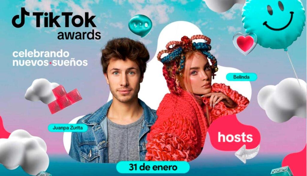 Conducidos por Belinda y Juanpa Zurita, los TikTok Awards celebrarán su tercera edición este 31 de enero en la CDMX, y premiarán a los creadores favoritos del público en 17 categorías diferentes que engloban el espíritu de TikTok con contenidos enfocados en entretenimiento, comedia, cocina, moda, belleza, gaming, libros, deportes y mucho más. Además, el escenario vibrará al ritmo de grandes invitados musicales como Yandel, Camilo, Danny Ocean, Belinda, Bellakath, Uzielito Mix y Michelle Maciel, entre otros.