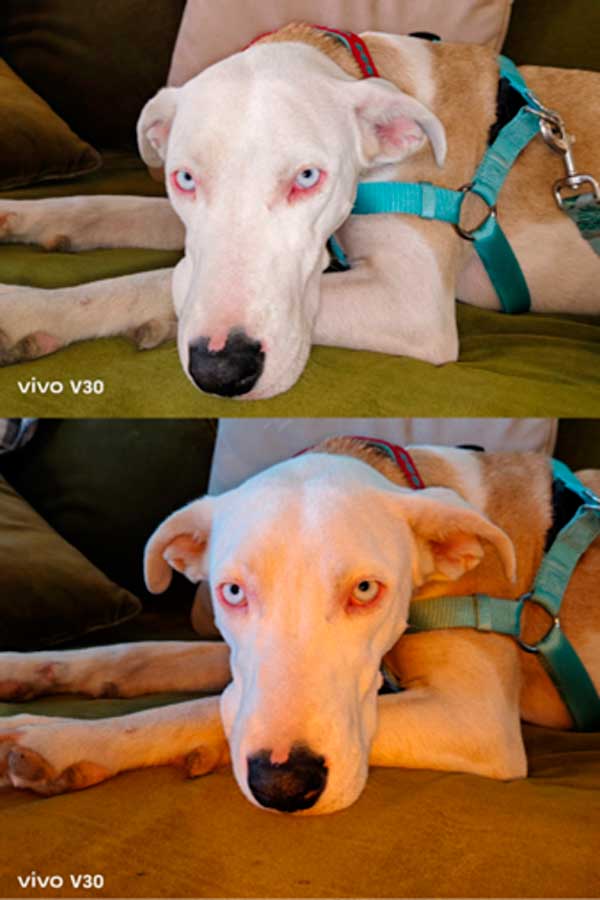 En días de lluvia cuando es imposible salir a pasear, puede ser difícil innovar en las fotos que tenemos de nuestro amigo de cuatro patas, pero con vivo eso va a cambiar. Juega con el entorno gracias al Retrato con luz aura con ajuste de temperatura inteligente. Esta función te ayudará a adaptarte a iluminación cálida o fría y así resaltar los rasgos más tiernos que le darán un toque especial a cada imagen de tu simpático orejón.