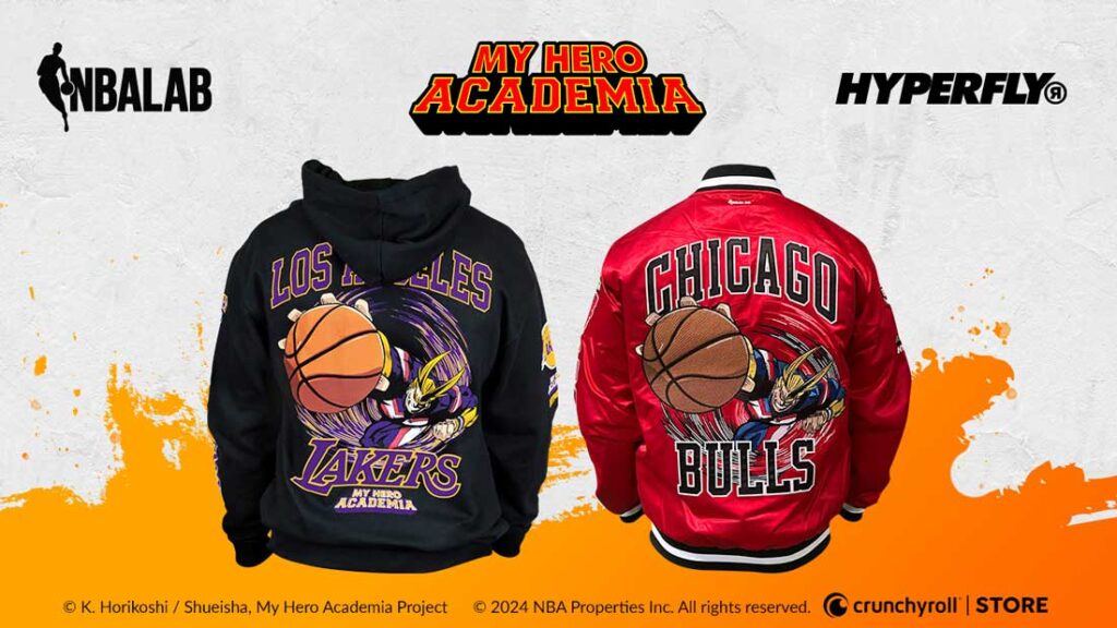 Culver City, California, 14 de marzo de 2024 – La última colaboración entre TOHO Animation, Crunchyroll, NBALAB y HYPERFLY para crear indumentaria con temática de My Hero Academia, se lanza hoy en Crunchyroll Store. En una combinación única, tanto los fanáticos del fenómeno mundial del anime como de la National Basketball Association (NBA) ahora tienen acceso a productos con nuevos diseños que unifican a sus personajes favoritos de My Hero Academia con 12 equipos de la Asociación.