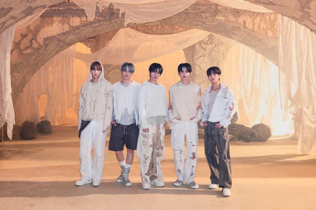 TOMORROW X TOGETHER, compuesto por SOOBIN, YEONJUN, BEOMGYU, TAEHYUN y HUENINGKAI, se estableció como ícono de la Generación Z a través de música que representa las experiencias y emociones comunes de la generación actual. El cuarto mini álbum del quinteto minisode 2: Thursday’s Child (lanzado en mayo 2022) debutó en el número 4 del Billboard 200 y permaneció en la lista durante 14 semanas, mientras que su quinto mini álbum, The Name Chapter: TEMPTATION (lanzado en enero 2023) debutó en el número 1. En julio de 2022, la banda se convirtió en el primer grupo de K-pop en tocar en LOLLAPALOOZA Chicago y regresó un año después, en agosto de 2023, para convertirse en el primer grupo de K-pop en encabezar el festival. TOMORROW X TOGETHER ha sido nominado a prestigiosos premios, entre ellos los American Music Awards y los People’s Choice Awards, y ganó un MTV EMA 2022 (Best Asia Act) y un MTV VMA 2023 (PUSH Performance of the Year). La banda lanzó su anticipado sexto mini álbum, minisode 3: TOMORROW el 1 de abril de 2024.