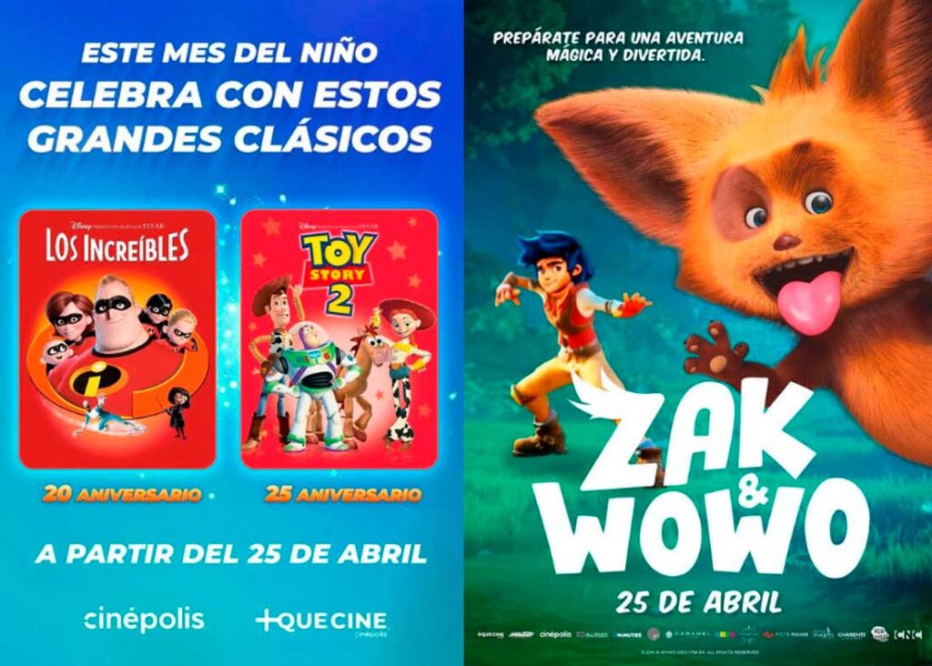 - Este 25 de abril, +QUE CINE trae, en exclusiva, la mejor celebración para el Día del Niño, con la nueva película animada Zak y Wowo y los reestrenos de Pixar: Toy Story 2 y Los Increíbles.