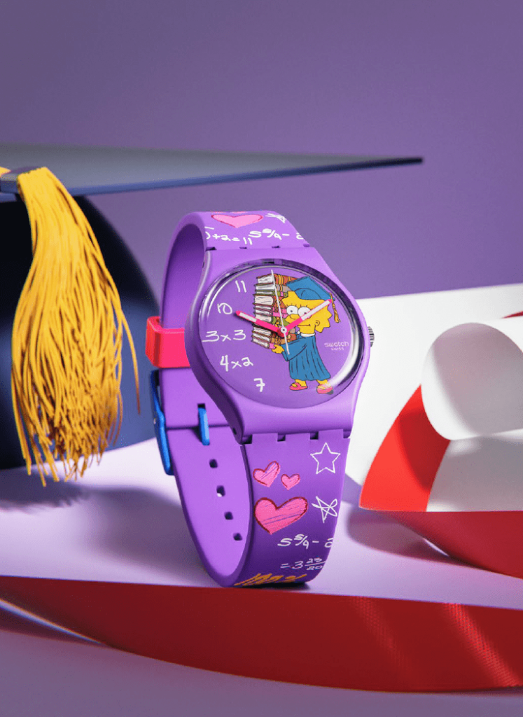 Swatch sabe que graduarse es un gran hito y por ello quiere celebrarlo con CLASS ACT, el último reloj de la colección de Los Simpson.