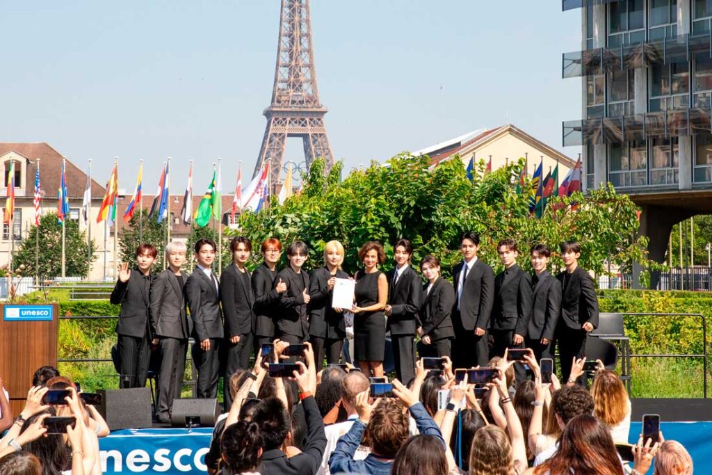 “Estamos encantados de unir fuerzas con nuestro nuevo y primer Embajador de Buena Voluntad para la Juventud, el icónico grupo de K-pop SEVENTEEN, capaz de animar e inspirar a los jóvenes de todo el mundo. SEVENTEEN y la UNESCO apoyarán juntos proyectos liderados por jóvenes en los campos de la creatividad y el bienestar en todo el mundo, ayudando a jóvenes de todos los orígenes a apoyar a sus comunidades, en particular a través de la música, las artes y el deporte”, afirmó Audrey Azoulay, Directora General de la UNESCO.