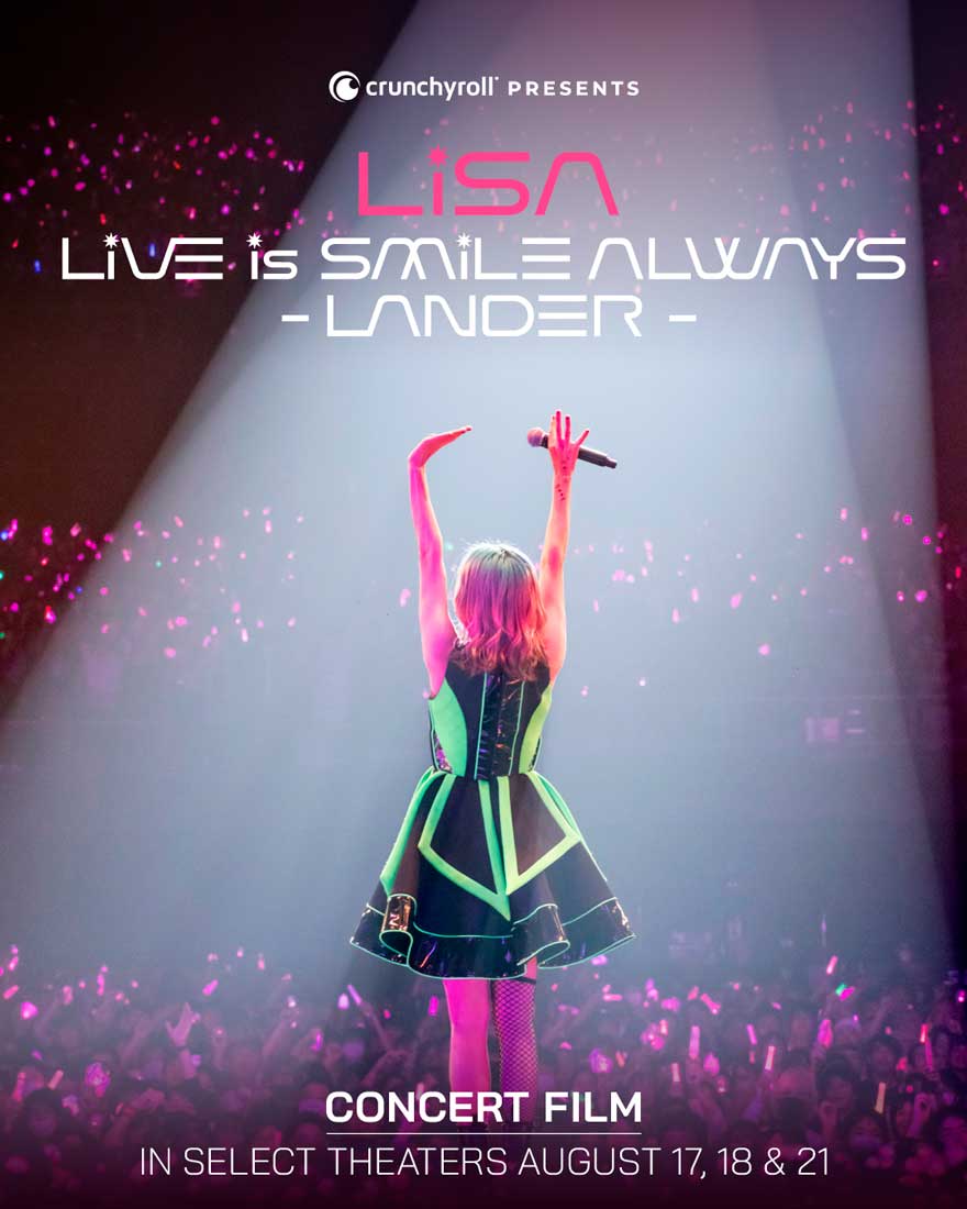 Culver City, California, 28 de junio de 2024 – Crunchyroll, el hogar por excelencia del anime en todo el mundo, ha anunciado la adquisición de los derechos norteamericanos de LiVE is SMiLE ALWAYS -LANDER- de la cantante de J-pop LiSA. La película del concierto, que será distribuida por Crunchyroll y Sony Pictures Entertainment, llevará el espectáculo final de LiSA en el Tokyo Garden Theatre a cines de Estados Unidos y Canadá el 17 de agosto de 2024 para un evento especial de tres días.