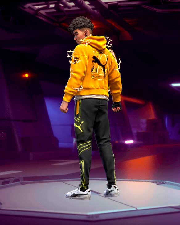 La estrella de esta colaboración es una hoodie en color amarillo con estampados gráficos y detalles alusivos de las marcas que robarán la atención, como el mapa del juego que representan el mundo tan emocionante de Free Fire en la espalda y por supuesto en conjunto con el icónico Big Cat de PUMA al centro te harán sentir con la destreza de los personajes en el juego pero ahora en la vida real; la doble letra F en el brazo izquierdo y los logotipos de ambas marcas en el pecho son la mezcla perfecta que manifiesta la conexión y creatividad de la prenda. Esta hoodie no sólo simboliza la convergencia del mundo deportivo con el virtual, sino también destaca el compromiso de ambas marcas con la innovación y el diseño que representa el espíritu competitivo y audaz dentro y fuera del juego. FOREVER FASTER y Booyah! son elementos icónicos que no podían dejarse de lado y que se distinguen en ella.
