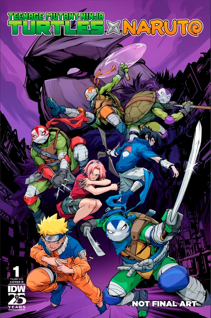 Hace unos días, IGN anunció una emocionante colaboración entre IDW Publishing y Viz Media: ¡una serie de cómics de cuatro números que cruzará los universos de las Tortugas Ninja y Naruto! Caleb Goellner (Sonic the Hedgehog) es el encargado del guion, Hendry Prasetya (Mighty Morphin Power Rangers) realiza las ilustraciones, Raúl Angulo se encarga del color, y Ed Dukeshire de las letras. Jorge Jiménez y Prasetya han dibujado la portada del primer número, que se publicará el 13 de noviembre.