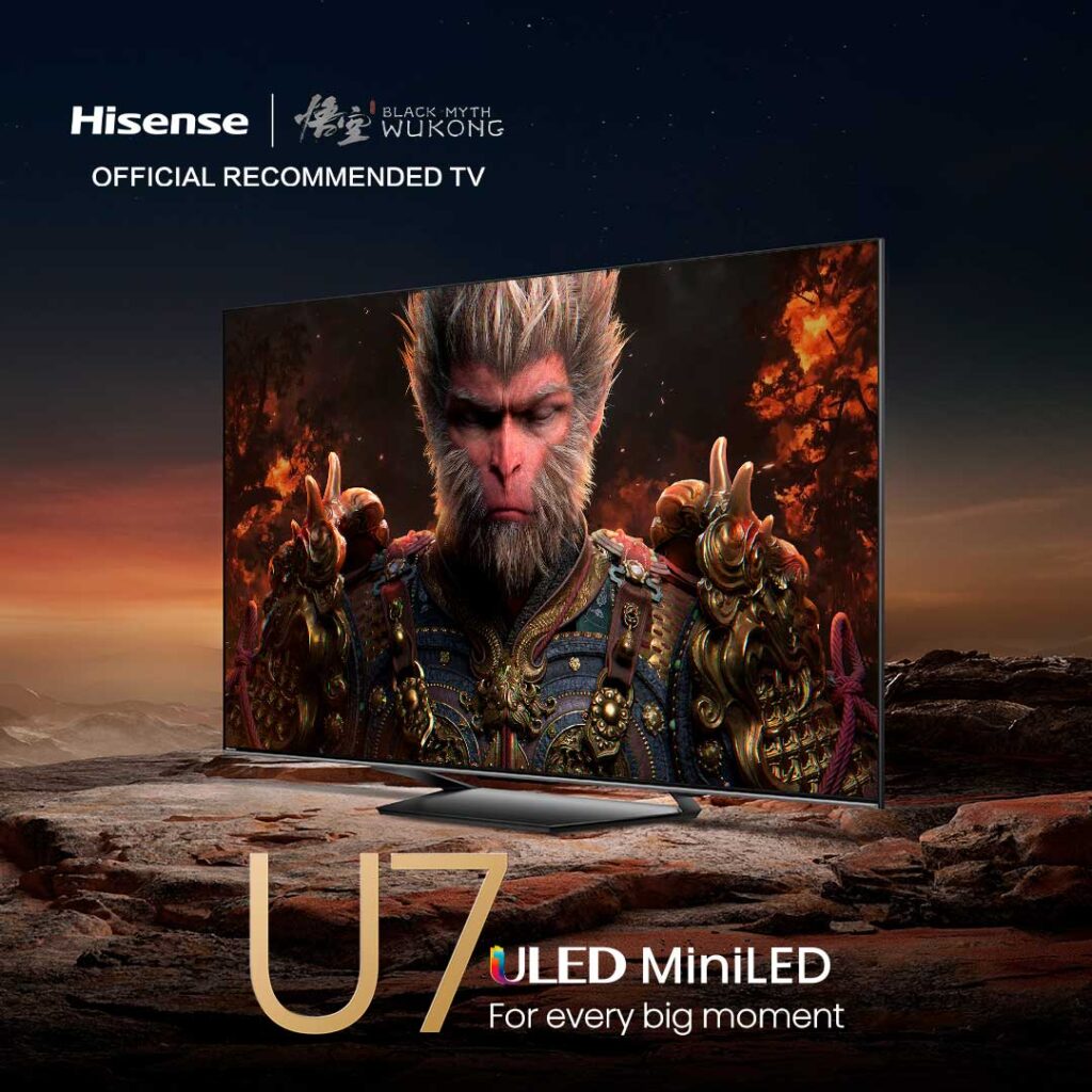 Como socio global oficial de Black Myth: Wukong, Hisense presenta su serie ULED Mini-LED U7, así como el modelo U76N de 100 pulgadas, como los televisores oficiales recomendados para el juego. Estos televisores de última generación ofrecen una experiencia de juego inmersiva que se adapta perfectamente al épico mundo de Black Myth: Wukong.