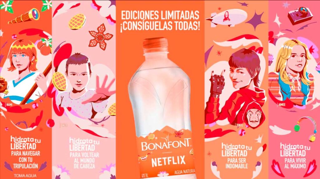 A través de las etiquetas coleccionables de las botellas Bonafont que muestran a mujeres poderosas y valientes de tus series favoritas de Netflix como: La Casa de Papel, Stranger Things, Sex Education, Rebel Moon, One Piece y Gambito de Dama; Bonafont celebra el poder de las historias femeninas y afianza su compromiso con fomentar, no solo la hidratación, sino también el poder de las historias de mujeres poderosas. Cada sorbo de agua Bonafont se convierte así en una experiencia empoderante que celebra la fortaleza femenina.