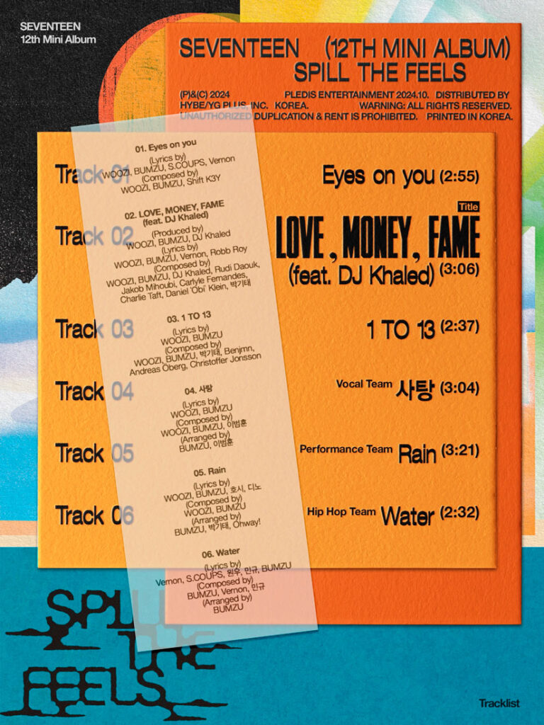 Los iconos del K-pop SEVENTEEN revelan hoy el tracklist de su muy esperado 12° mini álbum SPILL THE FEELS, que se lanzará el 14 de octubre.