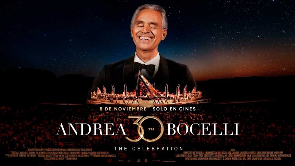 Ciudad de México, 8 de octubre de 2024.- Mercury Studios, Fathom y Cinépolis +QUE CINE anunciaron hoy la fecha de estreno en cines mexicanos del concierto del icónico tenor italiano Andrea Bocelli, Andrea Bocelli 30: The Celebration. La película, que narra el concierto de tres días que Bocelli realizó en Italia durante julio, en honor a su 30 aniversario en la música, se estrenará en los cines del país el viernes 8 de noviembre.