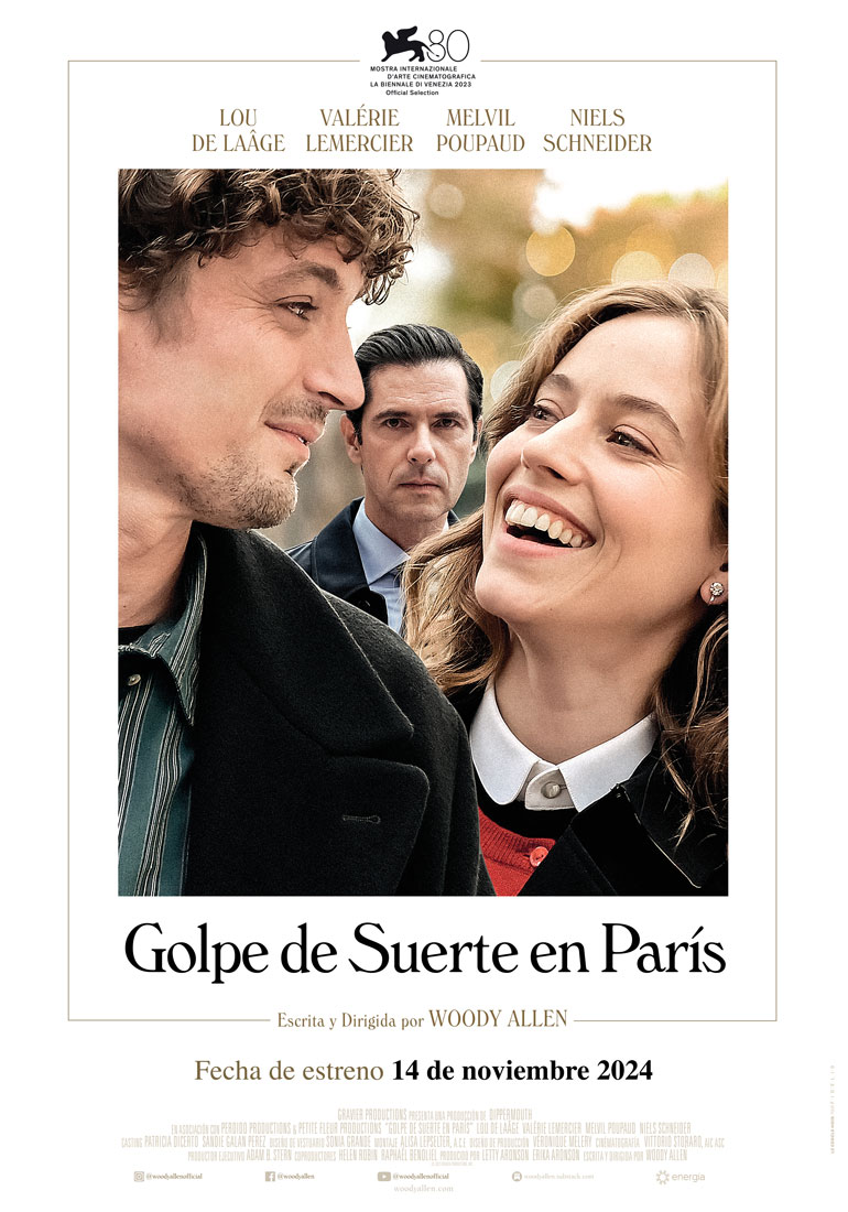 - Golpe de Suerte en París, la más reciente película de Woody Allen, estrena este 14 de noviembre en exclusiva con +QUE CINE y Sala de Arte Cinépolis®.