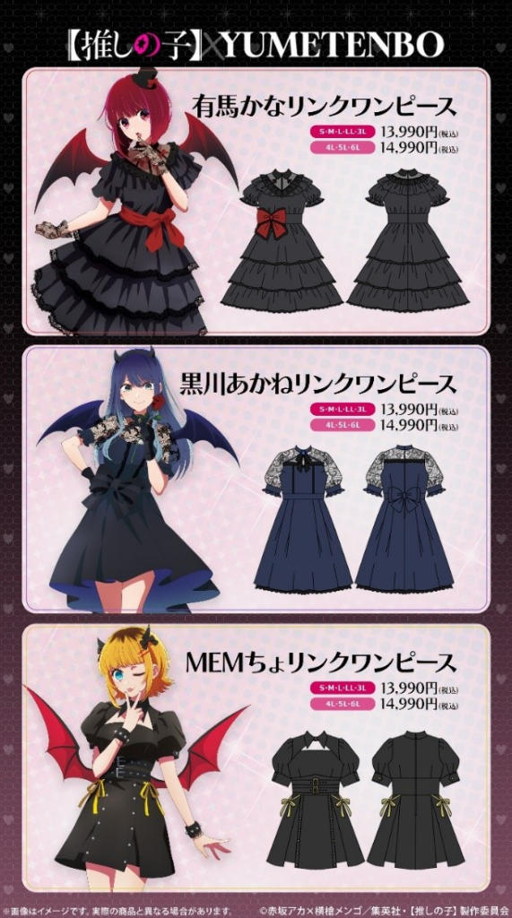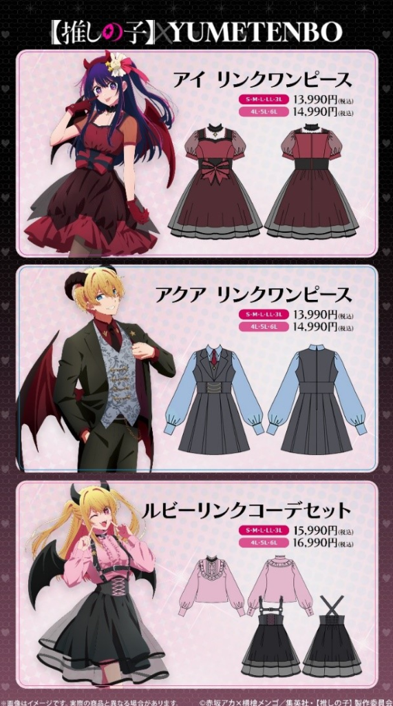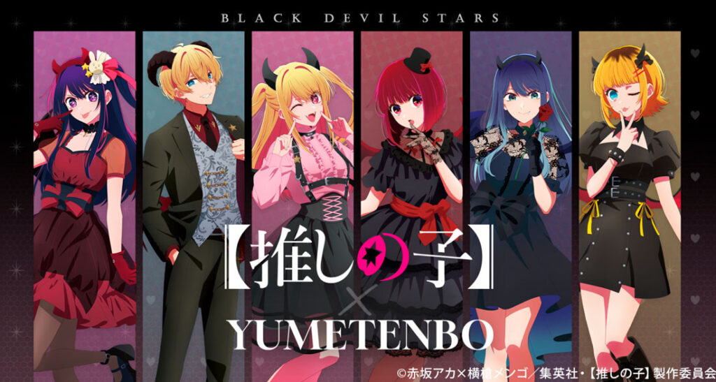 El popular anime Oshi no Ko, que recientemente anunció su tercera temporada, lanza una línea de moda inspirada en el tema «Black Devil Stars». Esta colección, basada en ilustraciones exclusivas de los personajes, incluye seis piezas de ropa diseñadas para combinar con los estilos de Ai, Aqua, Ruby, Kana Arima, Akane Kurokawa y MEM-cho.