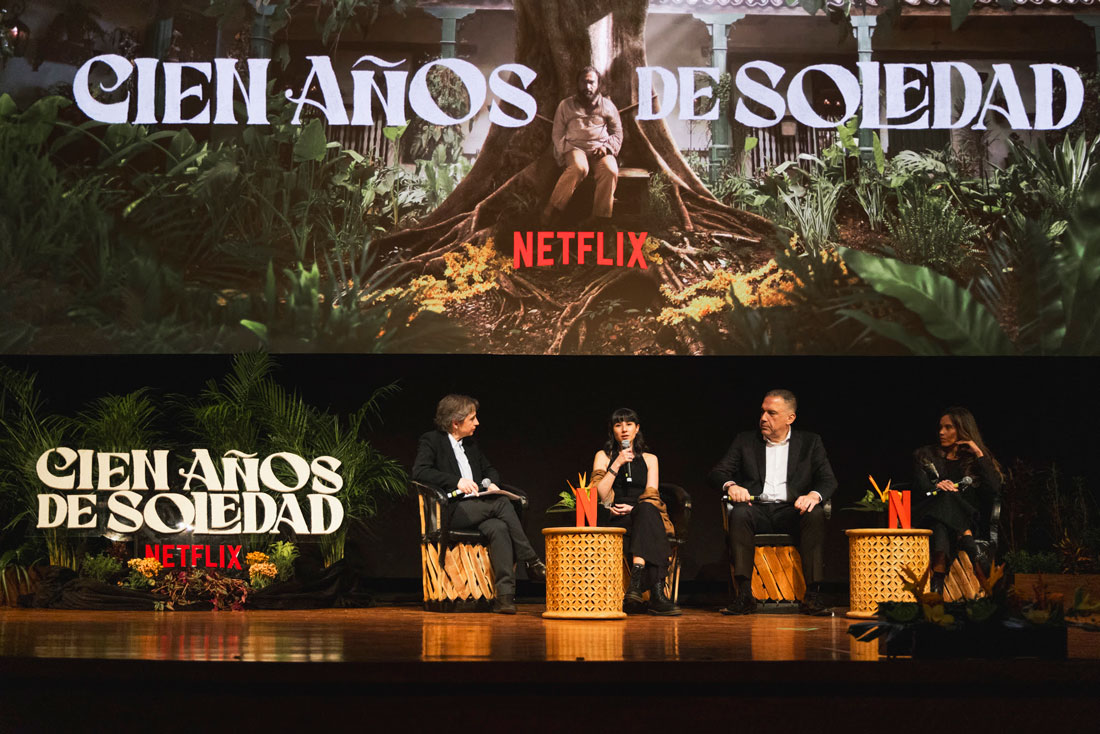 Previo a la proyección, se realizó un panel enfocado en cómo el mágico y sensorial mundo de Macondo cobra vida a través de una producción sin precedentes en Latinoamérica, en el cual participaron Francisco Ramos, acompañado de Natalia Santa y Camila Brugés, parte del equipo de guionistas de la serie. Dicha conversación fue moderada por la periodista mexicana Carmen Aristegui, quien además es miembro del Consejo Rector de la Fundación Gabo, creada en 1995 por Gabriel García Márquez.