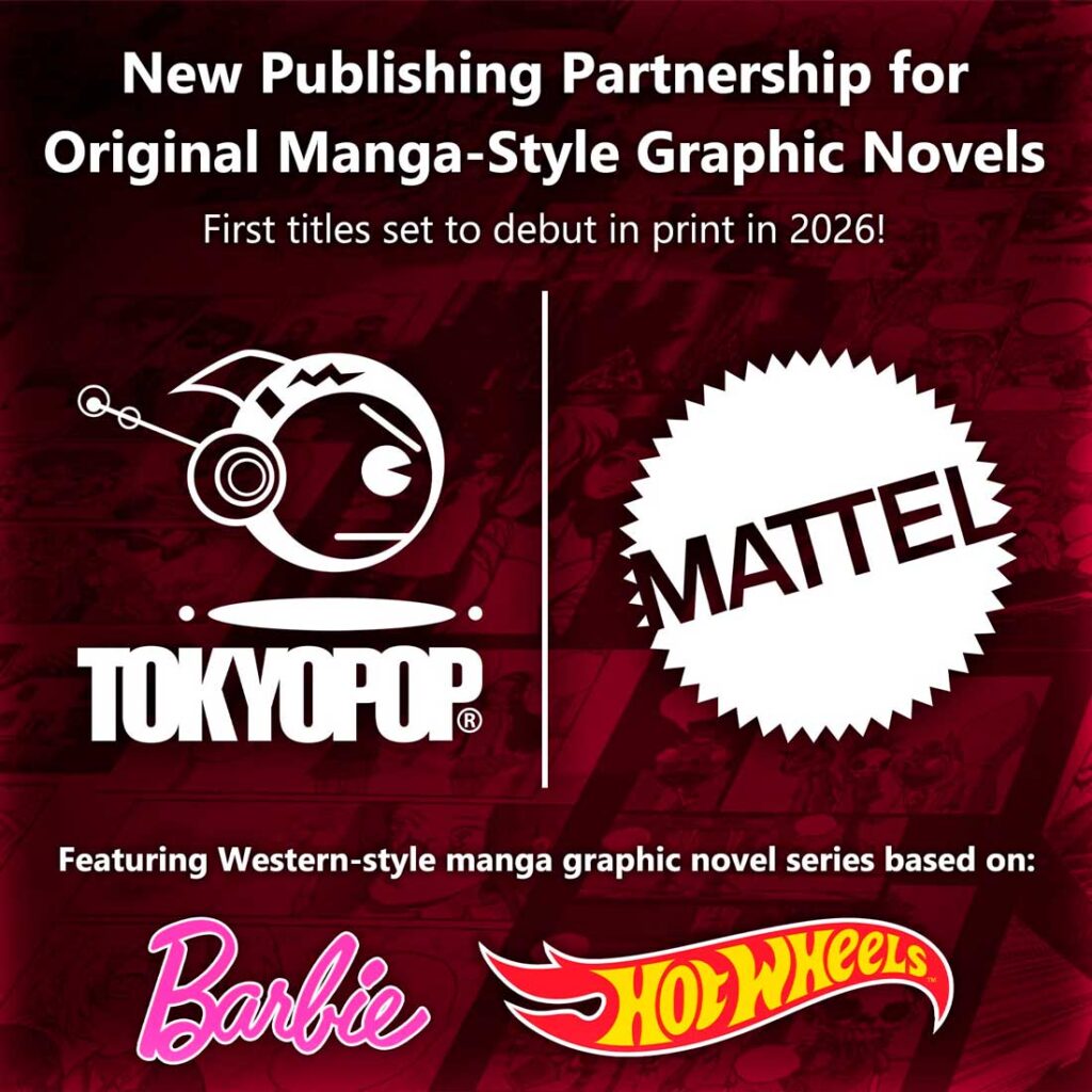 Tokyopop, la reconocida editorial de manga, anunció el jueves una alianza estratégica con la compañía de juguetes Mattel para desarrollar novelas gráficas con estilo manga basadas en las marcas icónicas de Mattel: Hot Wheels y Barbie. Estas obras estarán dirigidas a un público infantil de entre 8 y 12 años, y su debut en formato impreso está programado para 2026.